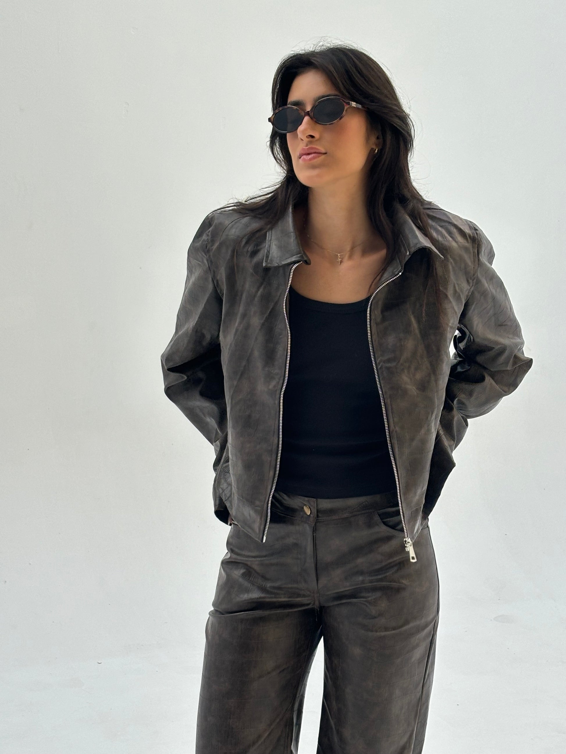 A modern classic with an edge — The Jouki Leather Jacket features a sleek silhouette and a subtle snakeskin-like texture that instantly elevates any look. Designed for effortless style and versatility, it’s a timeless wardrobe staple.
